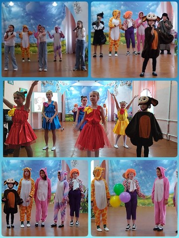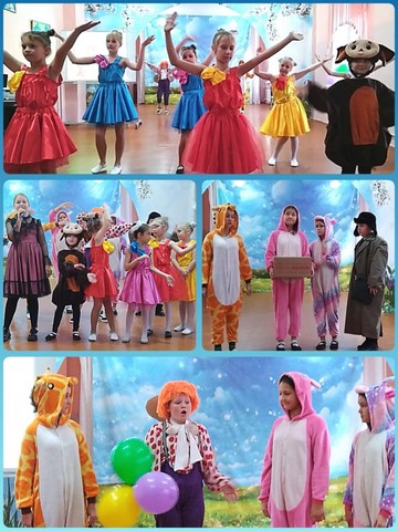 Кукутики покатали ребят на веселом паровозике. Помогли Чебурашке найти дорогу домой.Перевоспитали вредную старушку Шапокляк. Веселый Карлсон угостил ребят сладостями и поиграл с ними. В зале царила веселая атмосфера,звучала музыка и смех.