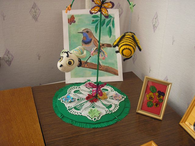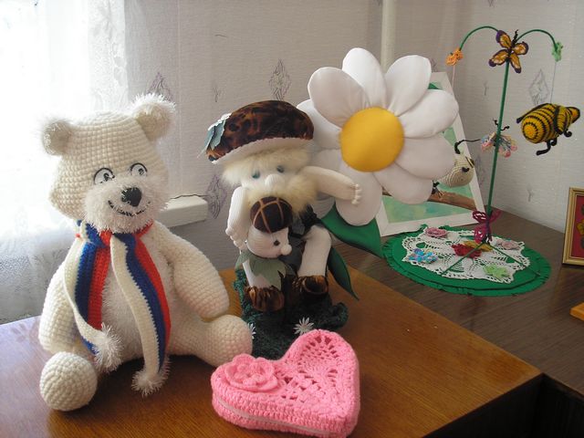 Воспитанники детского объединения «Ажурные мотивы» (рук. педагог д/о МБОУ ДОД ЦДОД Деева) Хохлова Анжела и Тишевских Анастасия представили композиции, связанные крючком : «Весёлая семейка» и «Зимние узоры» «Дымковскую барыню» из глины выставила Бельская Полина ( детское объединение «Керамика» рук.педагог д/о МБОУ ДОД ЦДОД Барышева Г. Е.)